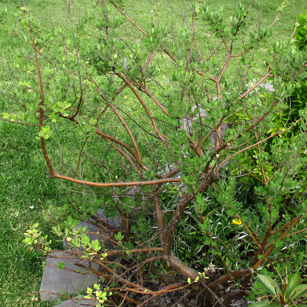 This overgrown old bush is a tangle of old wood and apart from cutting back to keep the path clear, has possibly never been pruned. Young shoots at the base, however, suggest it could tolerate a hard prune to reduce the size and produce a lusher shrub. Prune routinely after flowering. It's unlikely that this specimen receives any supplementary water or fertiliser, either.